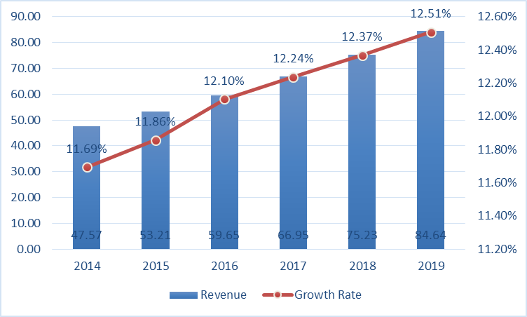 Bottled water market in APAC 2014-2019 ($ billions)