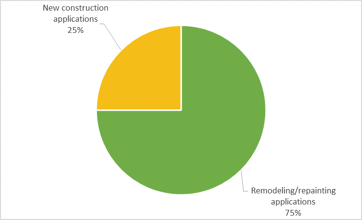 Residential end-users occupy around 65% of the interior architectural coatings market because of the recovery of the global housing market and increased demand for home improvement applications such as remodeling or new construction activities.